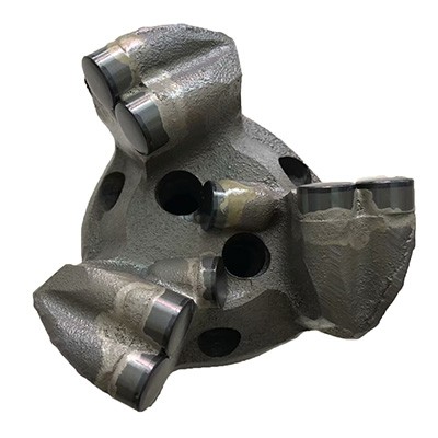 金刚石复合片钻头,以金刚石复合片为主要切削元件,充分利用金刚石复合片的高耐磨性和高抗冲击性,以刮削剪切原理进行岩层破碎,适用于软一中硬地层的钻进,且在克服不完整地城进行时有更好的优势。
